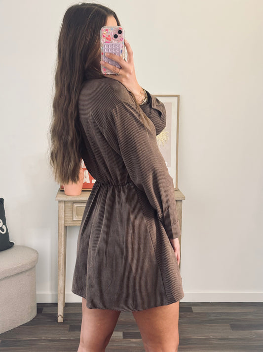 Robe Chemise à Rayures - Marron