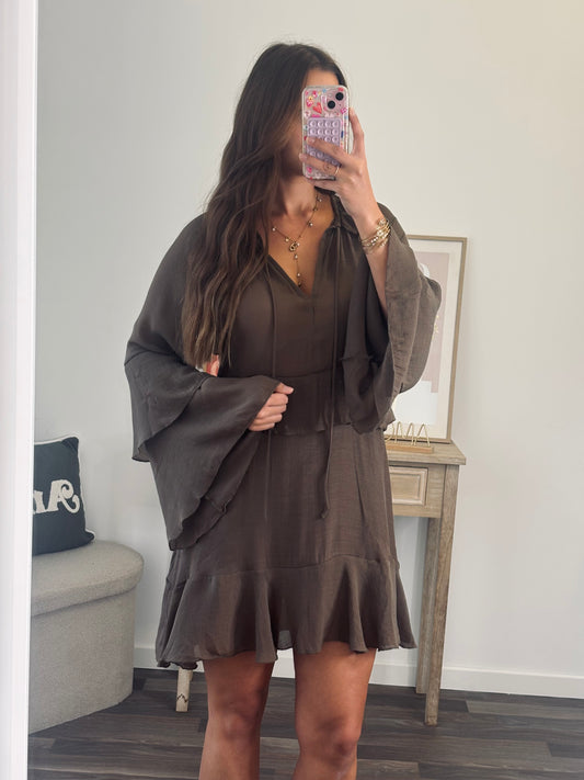 Robe Bohème à Volants - Marron