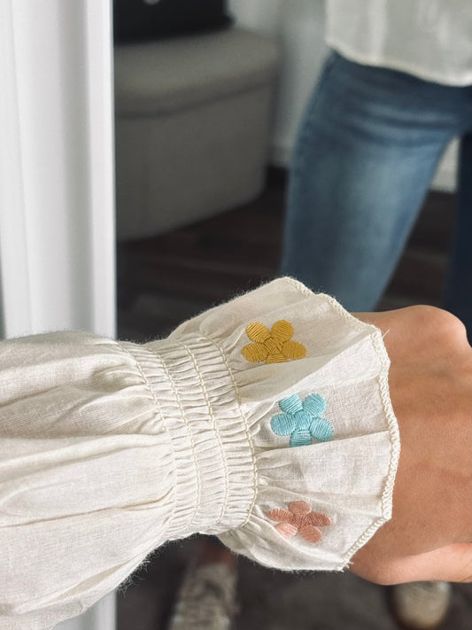 Blouse Brodée à Volants – Détail Fleurs