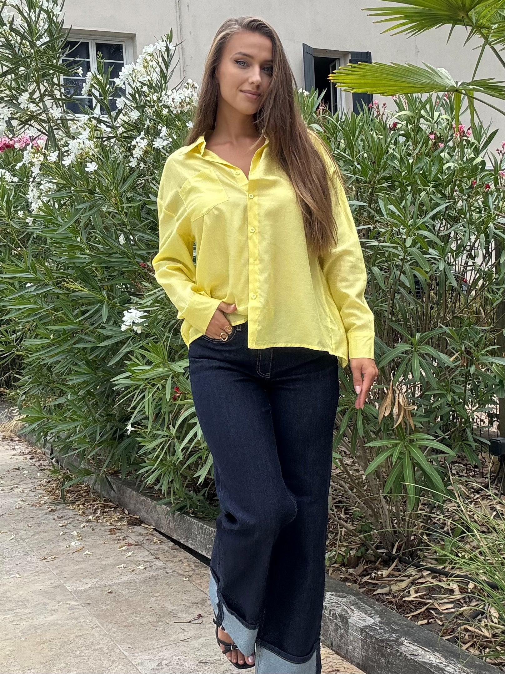 Illuminez vos tenues avec cette magnifique chemise jaune, parfaite pour les beaux jours. Son tissu léger et sa coupe décontractée en font une pièce à la fois confortable et ultra tendance.
