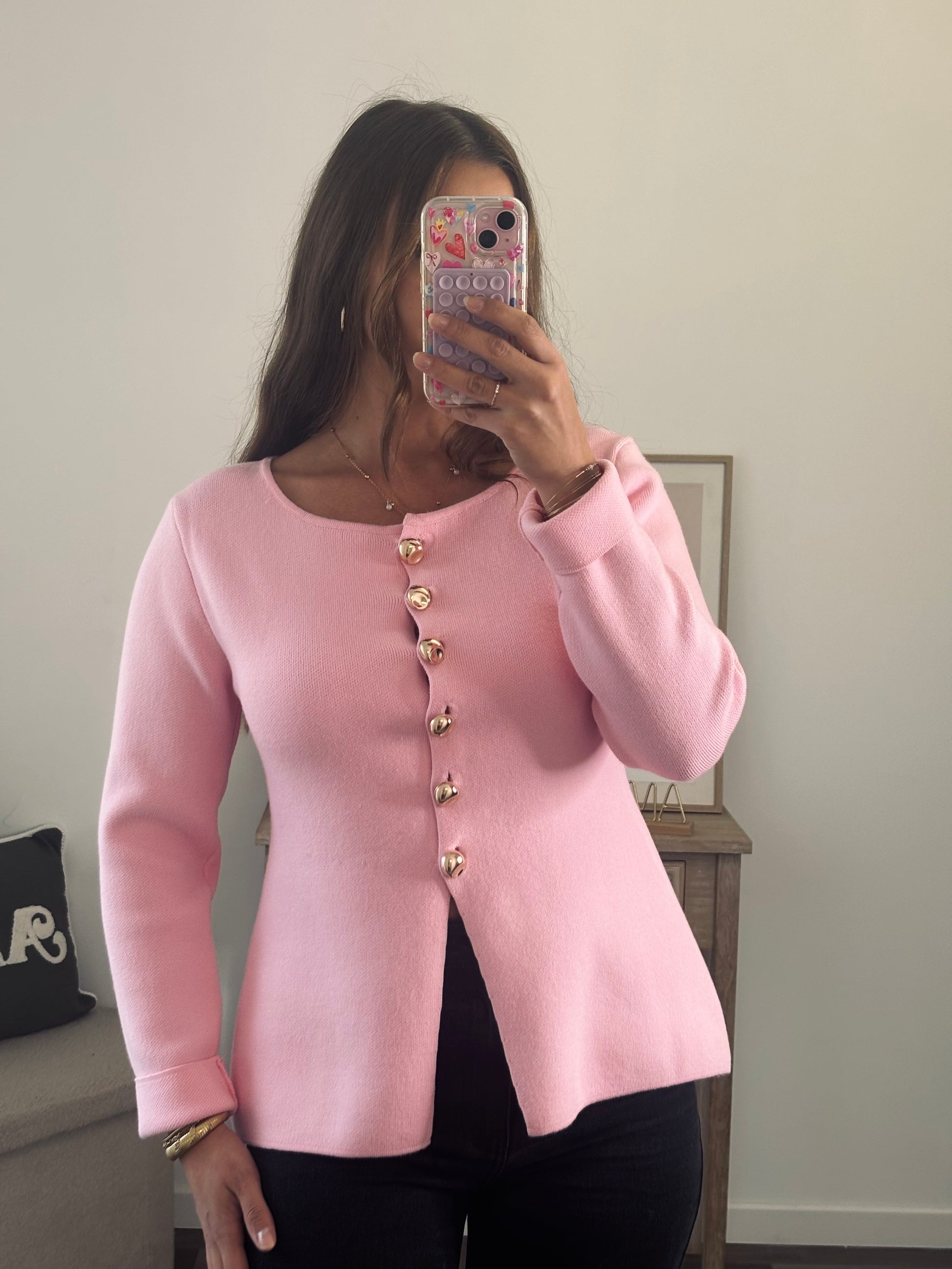 Gilet à Boutons Dorés - Rose