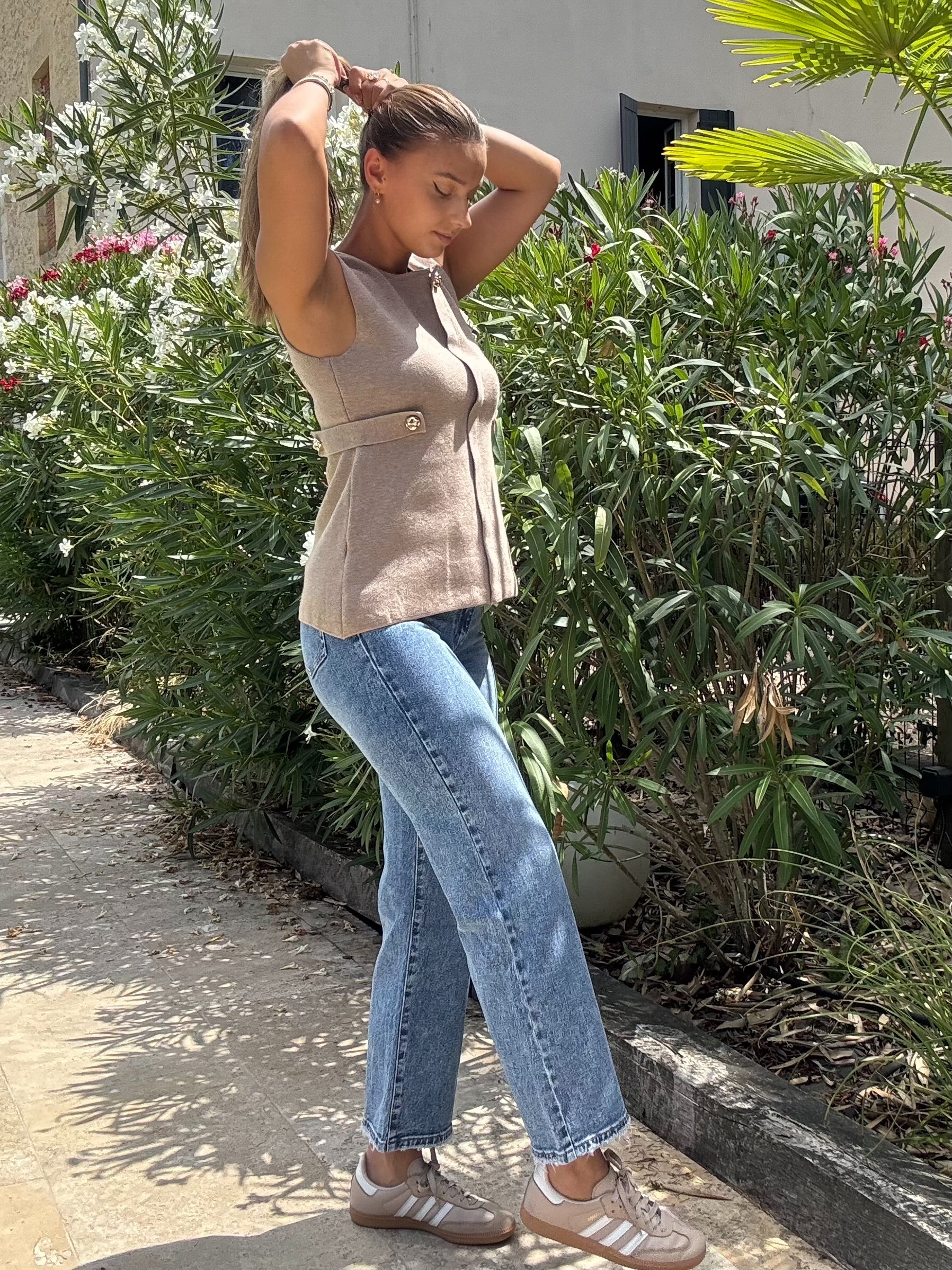 Ce haut est la pièce parfaite pour celles qui aiment allier confort, style et petites touches précieuses. À porter en journée comme en soirée pour un effet waouh garanti.